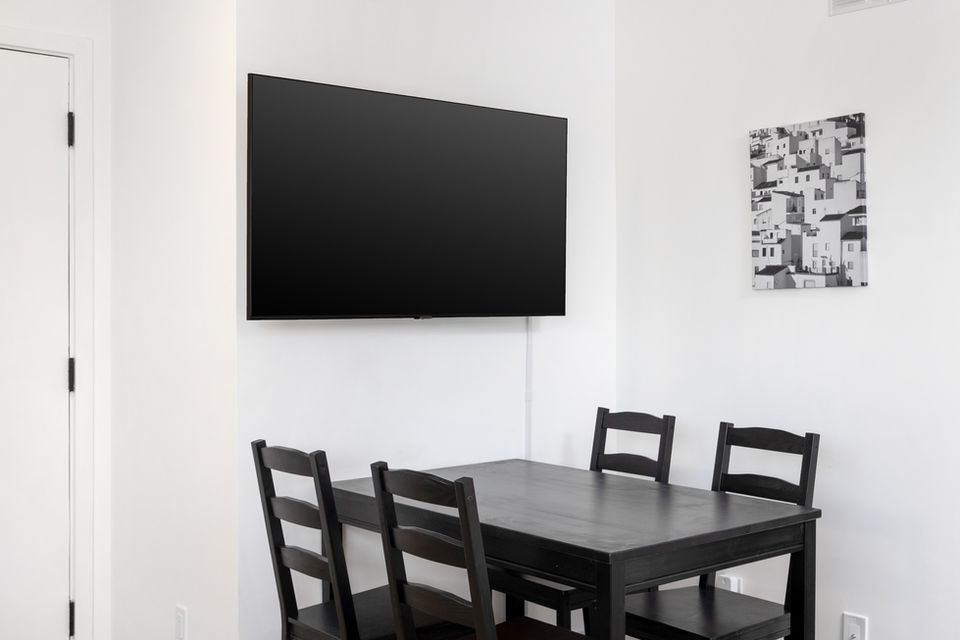 Our standard Double Queen suite offers 2 Queen-size beds, Kitchenette, Refrigerator (full-size), Sink, Microwave, Complimentary Wi-Fi, Washer/Dryer in-unit, Dining area, Coffee-maker, flat screen TV, specially curated record collection, unique to each Suite.